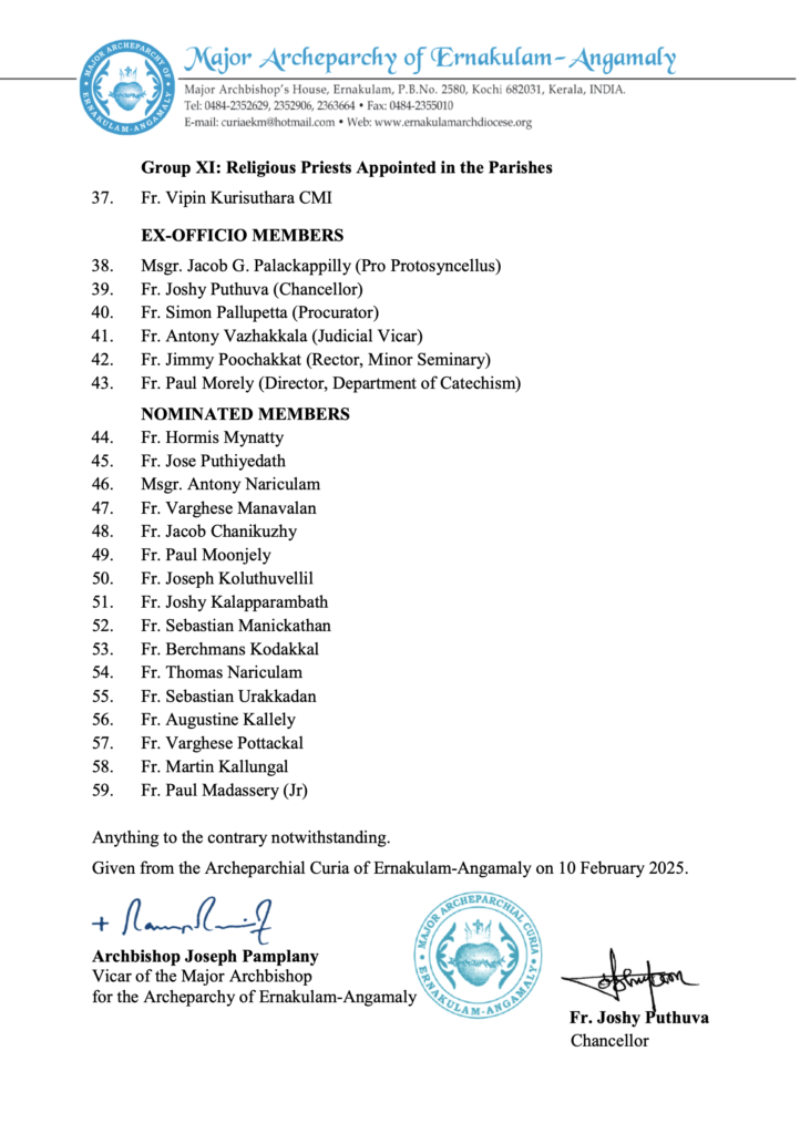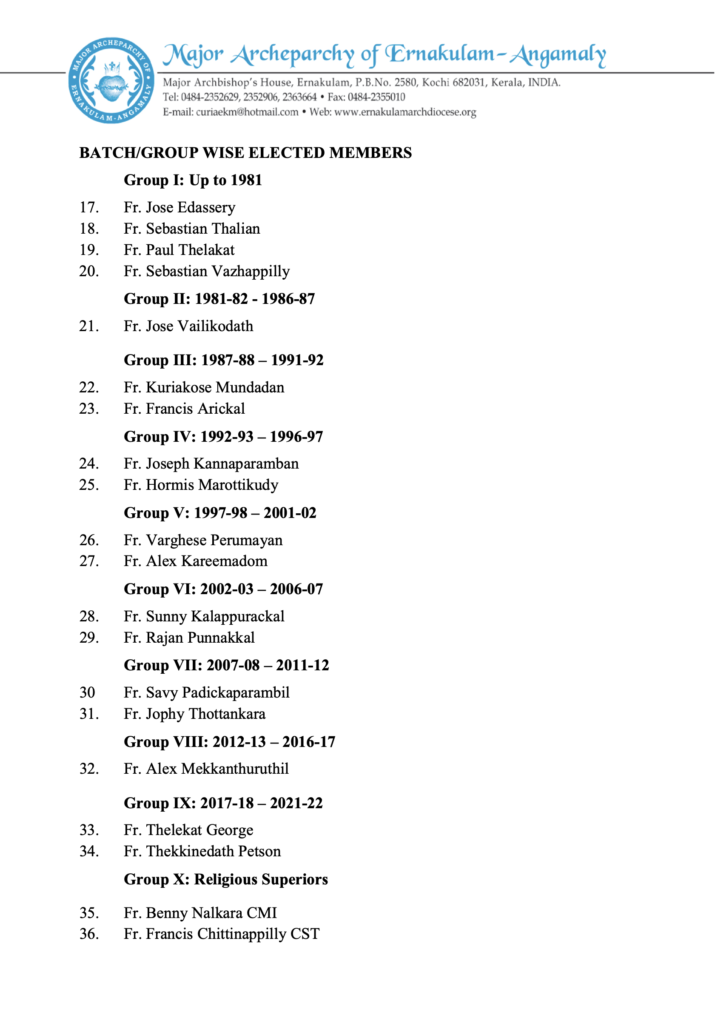 പഴയ കൂരിയാ അംഗങ്ങളെ മാർ പാമ്പ്ളനി മെത്രാപ്പോലീത്ത ഇപ്പോൾ പുതിയ പ്രേസബിട്രൽ കൗൺസിലിലേക്ക് നോമിനേറ്റ ചെയ്തിട്ടുണ്ട്. അവർ മെഡിക്കൽ ലീവിൽ ആയതുകൊണ്ട് പ്രസ്തുത മീറ്റിംഗിൽ പങ്കെടുക്കുമോ എന്നതിൽ സംശയം ഉണ്ട്. കാരണം ബിഷപ്പ് ബോസ്കോ പുത്തൂർ അഡ്മിനിസ്ട്രേറ്റർ ആയിരുന്ന സമയത്ത് ബിഷോപ്പ്സ് ഹൌസിൽ നിന്ന് ഒഴിഞ്ഞു പോകുകയും, മെഡിക്കൽ ലീവ് എടുത്ത് പോയിരുന്നു. വെള്ളിയാഴ്ച നടക്കുന്ന കൌൺസിൽ മീറ്റിംഗിൽ പങ്കെടുക്കാനുള്ള ഇവരുടെ സാധ്യത വിരളമാണ്.